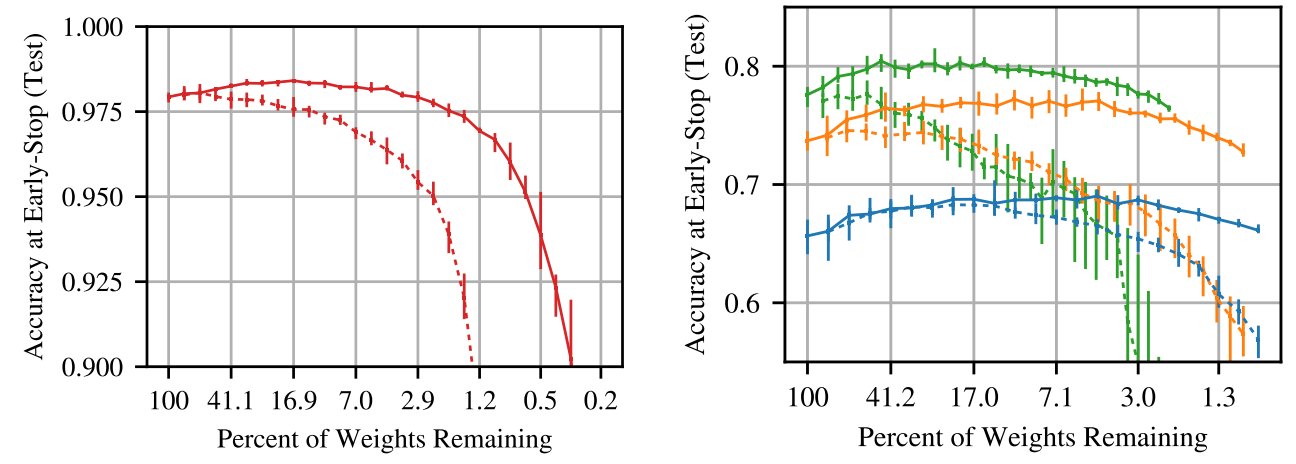 Why is it important? State-of-the-art neural networks are getting larger and more expensive to train and to use for prediction. Being able to consistently identify small subnetworks that achieve comparable performance enables training and inference with much fewer resources. This can speed up model iteration and opens up new applications in on-device and edge computing.
