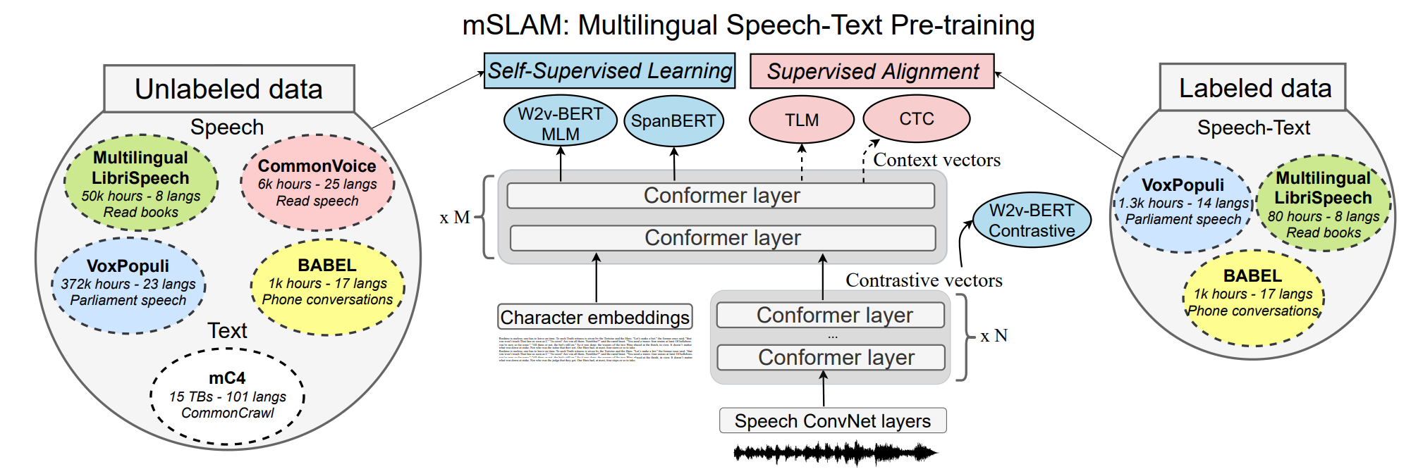 Bapna, A., Cherry, C., Zhang, Y., Jia, Y., Johnson, M., Cheng, Y., ... & Conneau, A. (2022). mSLAM: Massively multilingual joint pre-training for speech and text. arXiv preprint arXiv:2202.01374. ↩︎